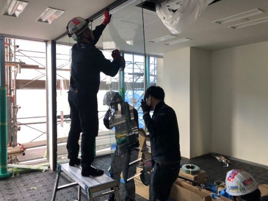ホーム 新着情報 パーテーションガラス施工 パーテーションガラス施工 社員ブログ 2020.11.20 今回は某現場のパーテーションガラス施工について紹介していきます。 このガラス工事では、天井と床に取り付けてあるレールにガラスを施工する仕様になっています。 このタイプのパーテーションは初めてだったので、皆で息を合わせながら作業しました。 ガラスの施工方法は現場によって様々なタイプがあります。 同じタイプのものでも現場の状況によって全く違う施工手段をとることもありますので、 今後も勉強し、様々な経験を積んでいきます。 業務部 西坂 吉田 コスモス祭りのはずが・・・ パネルソーでの切断作業 一覧へ戻る